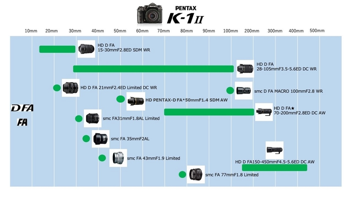 レンズリストは昨年同時期からHD DFA★50mm F1.4とHD DA35mm F2.8 Macro Limitedが追加されて、このようになった。